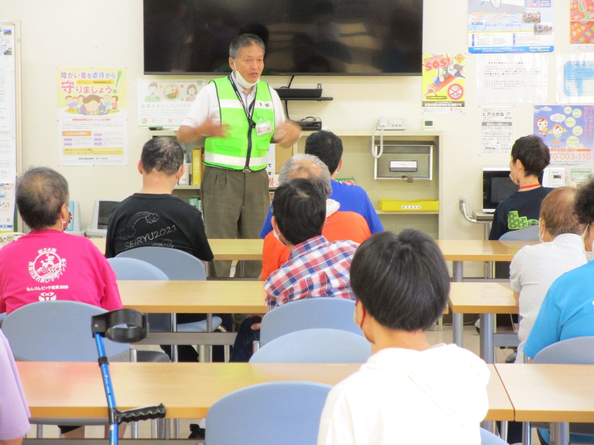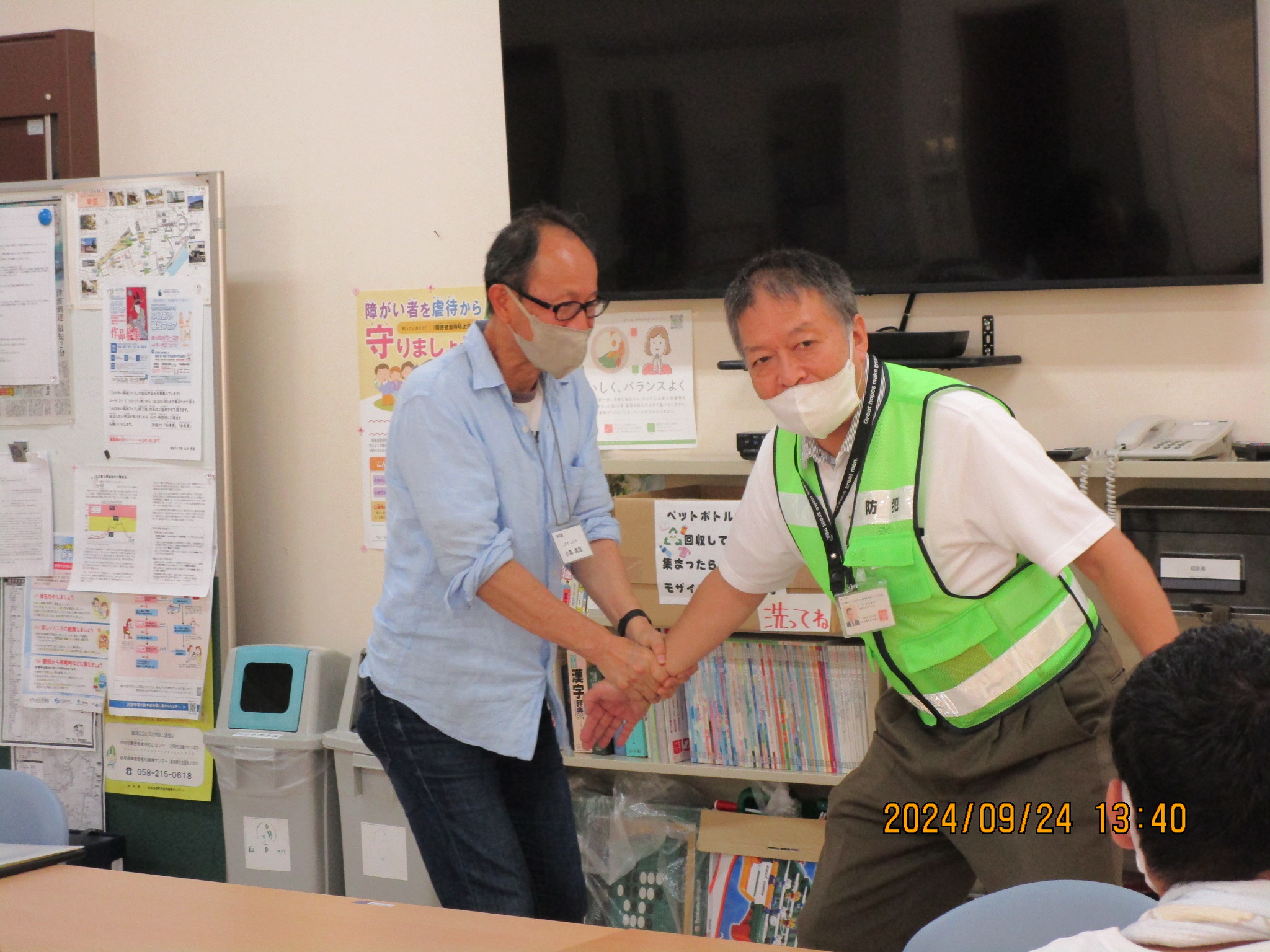 2024.11.01 清流園 ☆彡 防犯講習会の実施 ☆彡 施設情報 岐阜北警察署生活安全課より、地域安全活動アドバイザー江﨑様にお越しいただきました。 講習会では、防犯意識(不審者対応)の向上についてのお話やDVD視聴を行いました。 その後、刺すまた訓練を実施し、日頃の防犯対策の意識向上の大切さを改めて感じました。 1人ではなく、複数名で対応する事が大事(必要)と教えていただきました。 訓練はとても大切です。しかし、実際に役立つ場面が来なければ良い(来て欲しくない)なと思いました。 岐阜北警察署生活安全課地域安全活動アドバイザー江﨑様、ありがとうございました。