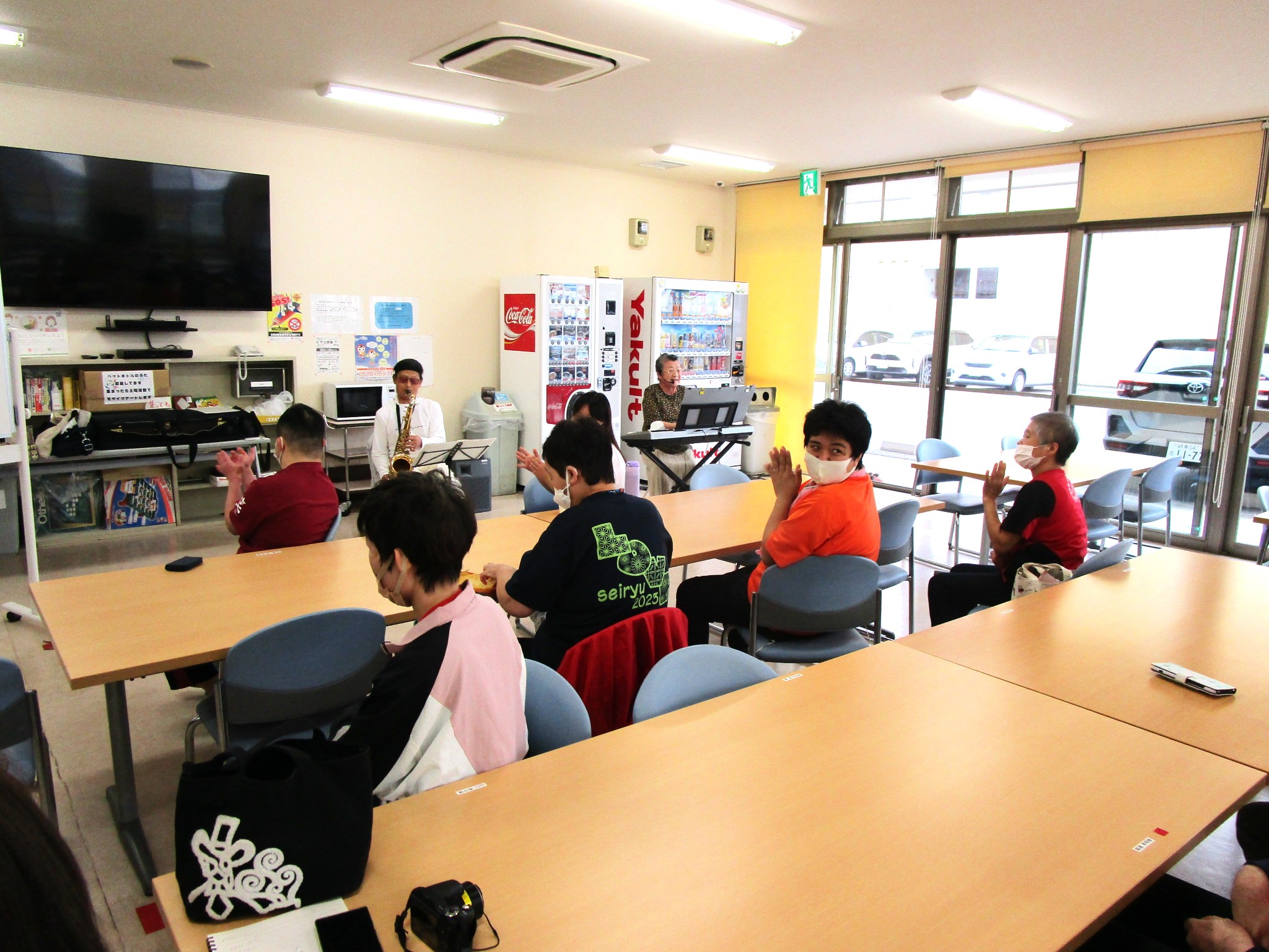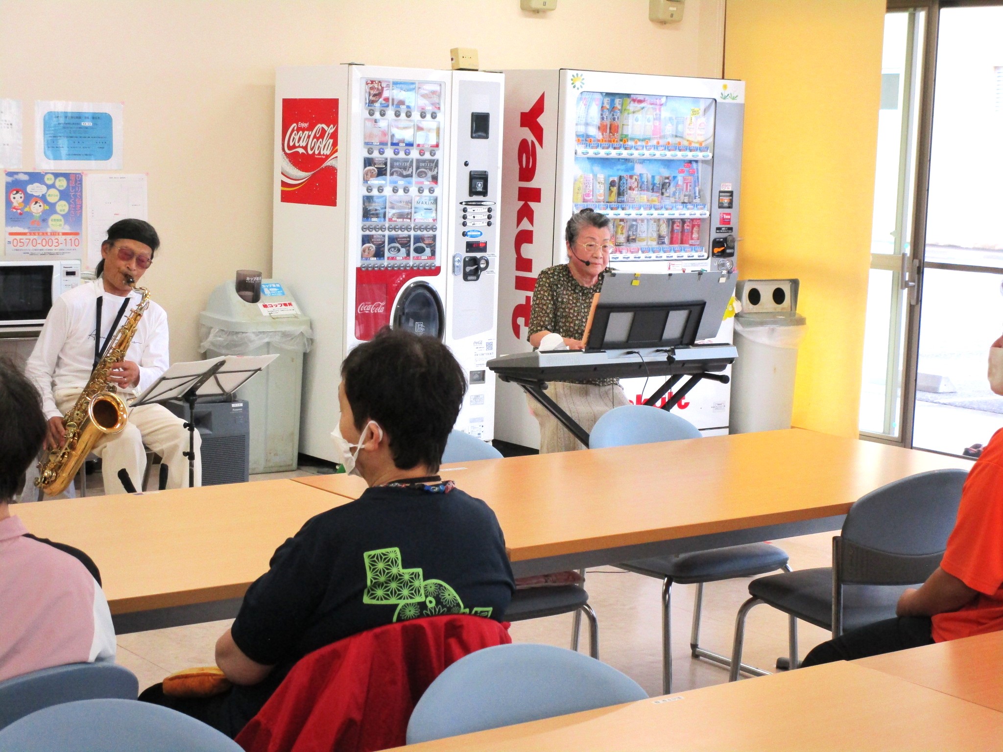2024.11.01 清流園 ☆彡 ツインテールさん来園! ☆彡 施設情報 キーボードとテナーサックスの伴奏で歌う姉弟“ツイン・テール”さんが来園されました。 赤とんぼ・紅葉・七つの子・里の秋・夕やけこやけ・翼をください・ビリーブ・さんぽ等々、16曲も演奏していただきました。 皆さん、自分の知っている曲は大きな声で歌われるなど、とても楽しく過ごされていました。 ツイン・テールさん、楽しい時間をありがとうございました。