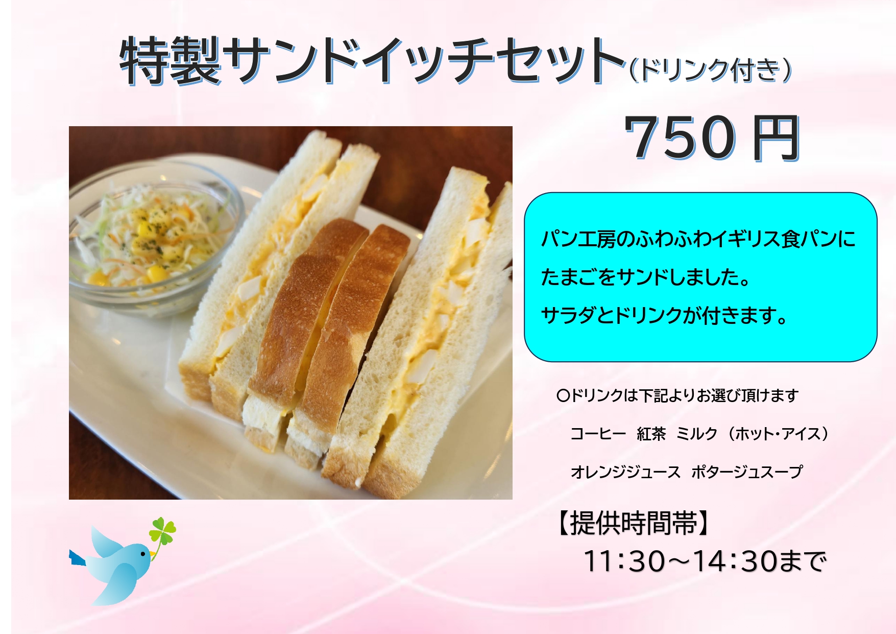 2025.06.11 清流園 ☆彡 たまごサンドで、ほっとひと息 ☆彡 施設情報 いつもカフェレストドーノ・パン工房ドーノをご利用いただきありがとうございます。 今回は特製サンドイッチのご紹介です。 やさしい味わいが嬉しい、手作りゆで卵サンド。 なめらかにマッシュした卵とほんのり甘いパンが、ほっとする美味しさです。 季節のサラダとドリンクが付いた、ちょっと贅沢なひとときをどうぞ。