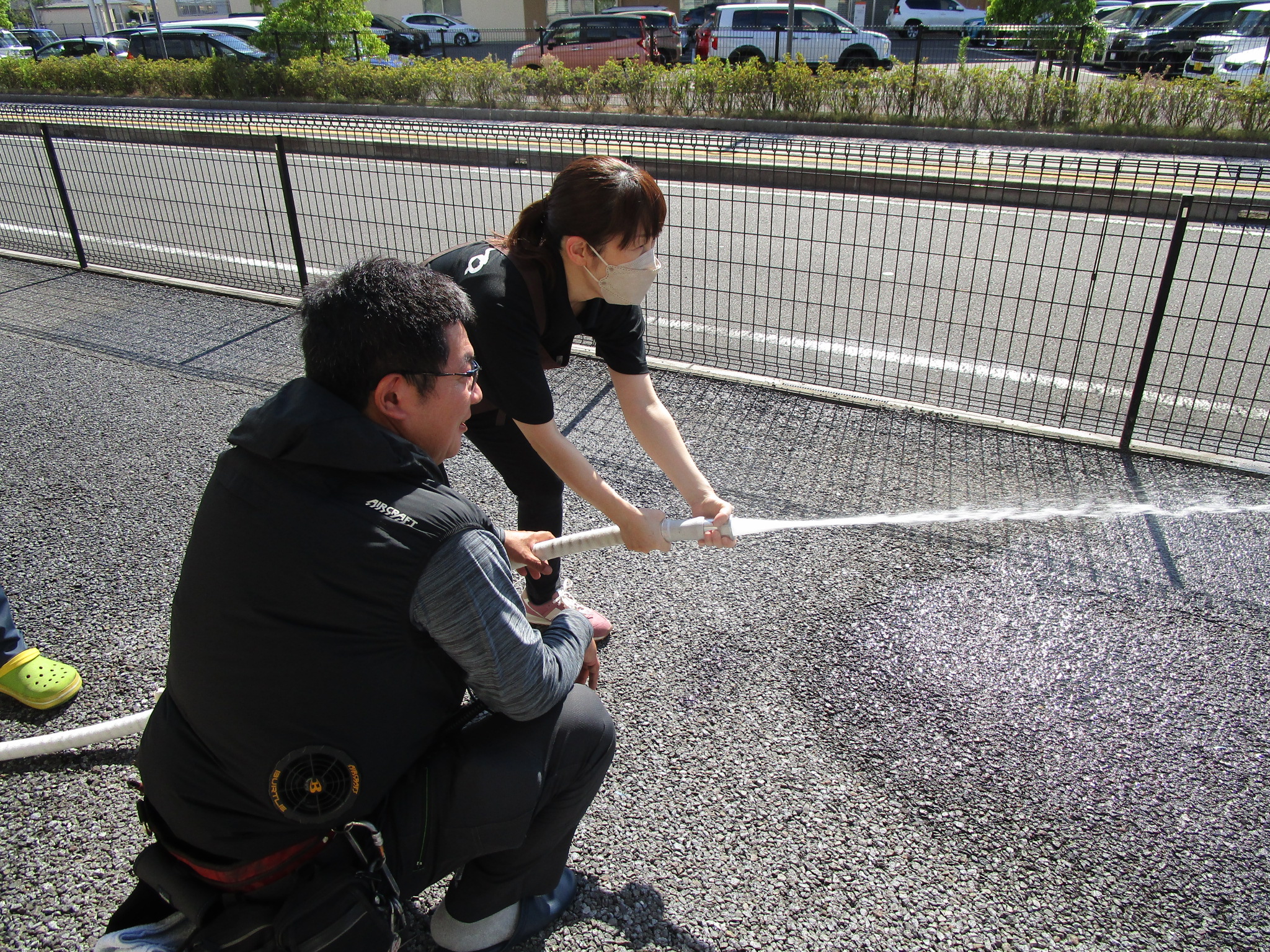 2025.09.04 清流園 ☆彡 消防点検・放水訓練を実施しました ☆彡 施設情報 当事業所では、利用者の皆さんと職員の安全を守るため、定期的に消防設備の点検や訓練を行っています。 先日は、消防点検の一環として、実際に消火栓を使った放水訓練を実施しました。 職員が順番にホースを操作しながら、水の勢いや放水の方法を確認。いざというときに落ち着いて対応できるよう、しっかりと準備をしています。 これからも消防署や専門業者の方と連携しながら、安心して過ごせる施設づくりに努めてまいります。