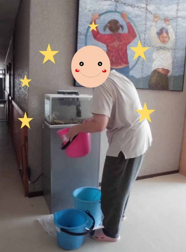 2025.09.22 白鳩学園 🐟学園の鯉🐟 施設情報 当園の玄関には鯉がいます🐟 金魚だと思っていたのですが 鯉とのこと👀 長年学園を見守ってくれているとか✨ いつもベテラン職員さんが合間を見てお掃除などお世話をしてくれています🧹