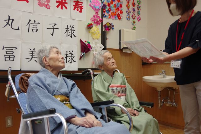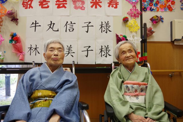 今年は2名の米寿の方にそれぞれ着物を着ていただき