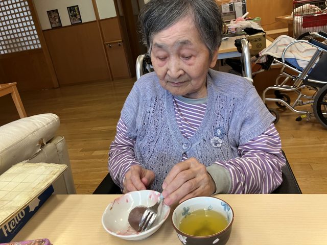 みなさん笑顔で頬張っていました。練り切りは栗の形で、