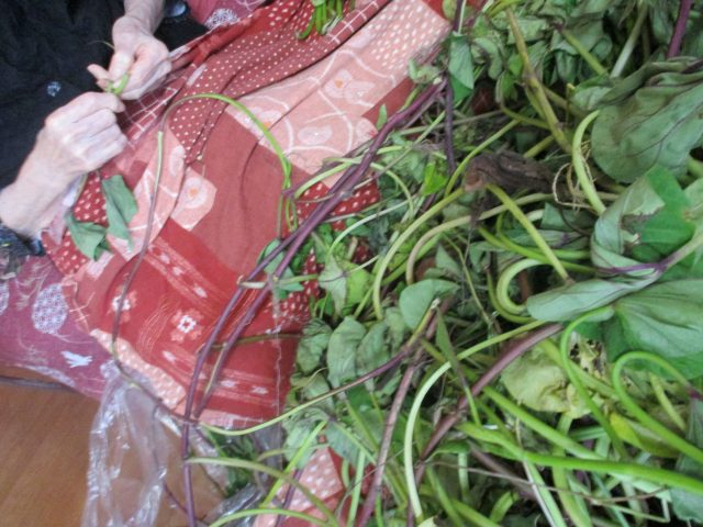でも、サツマイモの軸も煮て食べると美味しいです。