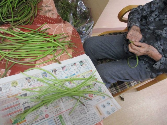 はじめに茎を取って、筋を取ることが正直めんどくさいんです。