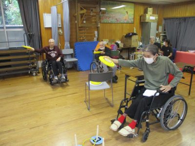 2025.11.21 三光園 岐阜県パラスポーツ秋大会 施設情報 11月9日、第23回岐阜県パラスポーツ大会秋大会に利用者4名が参加する予定でしたが、雨天のため参加を辞退しました。利用者の方々も楽しみにされていたため、園内にてスポーツや余暇を楽しみました。 フライングディスク 昼食は注文していた弁当を皆で食べました。 「来年はぜひ会場で参加したい」と利用者の方々も話されていました。
