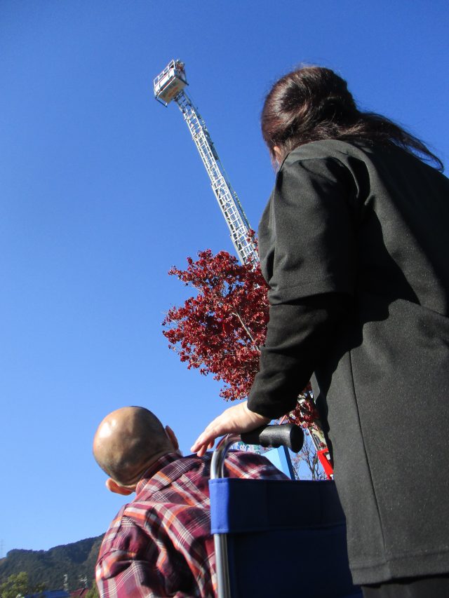 2025.11.20 幸報苑 山県市防災フェスタ行ってきました🚒 施設情報 11月16日(日)山県市で開催された 防災フェスタに参加してきました。 天候にも恵まれ、普段目の当たりすることが出来ない体験もしてきました。 どこまで上がるのかな~❓ 見て見てあんな高いところまで上がったよ😲 怖くないのかな~ 「震災対策活動用車」こんなすごい車があるんだね~ 凸凹道や水の中にも入れるんだ🚜