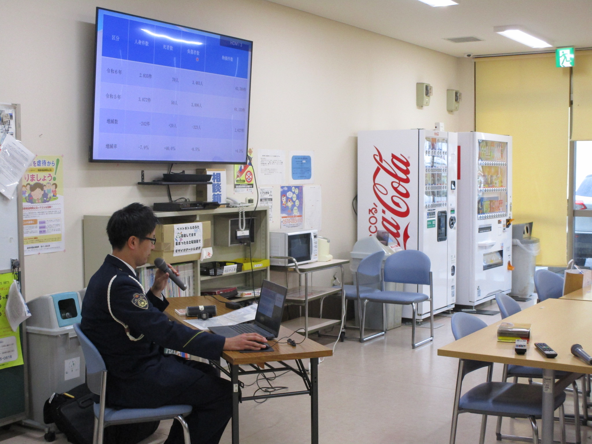 2025.11.29 清流園 ☆彡 交通安全講習会を開催しました ☆彡 施設情報 利用者と職員を対象に、岐阜北警察署の久保様を講師に招き、交通安全講習会を実施しました。 講習では安全ルールや歩行者・自転車の安全確認、事故時の対応などについて学び、参加者全員が安全意識を再確認しました。 今後も、利用者・職員双方の安全確保に努めてまいります。
