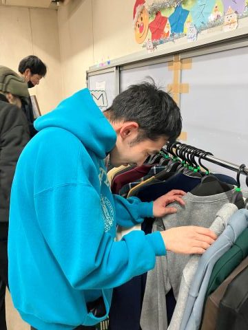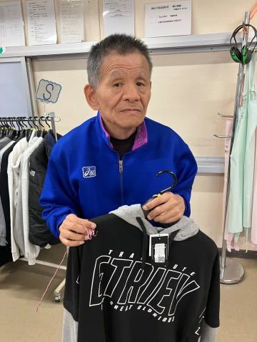 2025.12.02 みどり荘 11月の訪問販売(ふく丸) 施設情報 今回もたくさんの服・雑貨を持って来て頂きありがとうございます。 毎回、利用者様・職員一同、訪問を楽しみにしています。 おしゃれなパーカーを見つけました。 服は自分で選ばれます。 試着中。 自分に合う靴を見つけたようです。