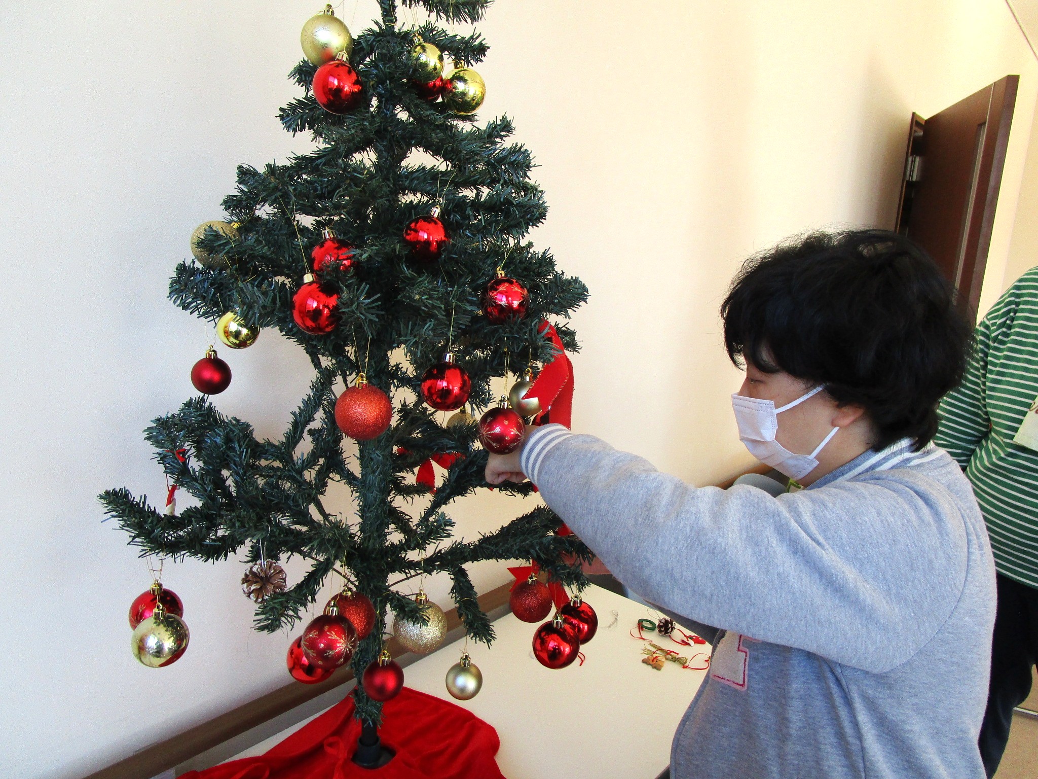 2025.12.15 清流園 みんなでクリスマスツリーを飾り付けました 施設情報 本日の土曜活動日では、季節を感じる取り組みとしてクリスマスツリーの飾り付けを行いました。 利用者の皆さんそれぞれが好きなオーナメントを選び、思い思いに飾り付けを楽しむ様子が見られました。 完成したツリーはとても華やかで、施設内が一気にクリスマスムードに包まれました。