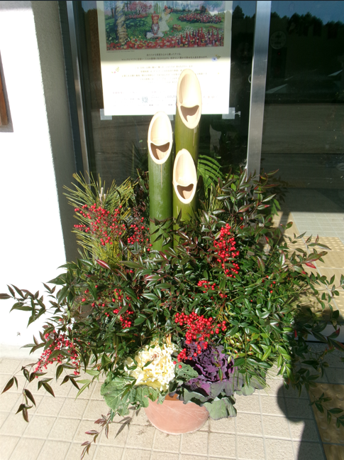 2025.12.26 白鳩学園 🎍お正月準備🎍 ~その2 手作り門松~ 施設情報 当園の玄関に門松登場🎍 毎年、職員さんが材料を持ち寄って手作りしています💪 本当に立派です✨ 竹の切り口が笑うように切るには技術がいるとか👏 竹にオリーブオイルを塗って色を保つらしいです👀