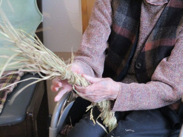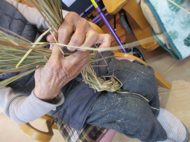 2025.12.25 飛騨寿楽苑 しめ縄つくり 施設情報 グループホーム輪では、年末に向けてしめ縄作りをしました! みなさん「どれ、やってみるかな」と 慣れた手つきで縄を編んでいく方、 「初めてやる」と慣れない手つきで編んでいく方、 様々でした。 どれも個性のあるしめ縄ができましたよ!!