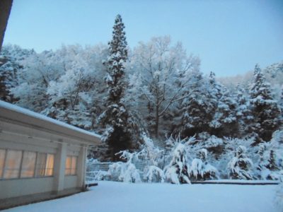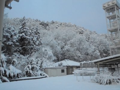 2026.01.27 三光園 雪だるまパート2 施設情報 1月25日、夜間から朝方にかけ再び山県市大桑地区に雪が積もりました。 夜勤明けで外を見ると早朝にしか見られない雪景色。 休憩中に雪だるまを作ってみました。