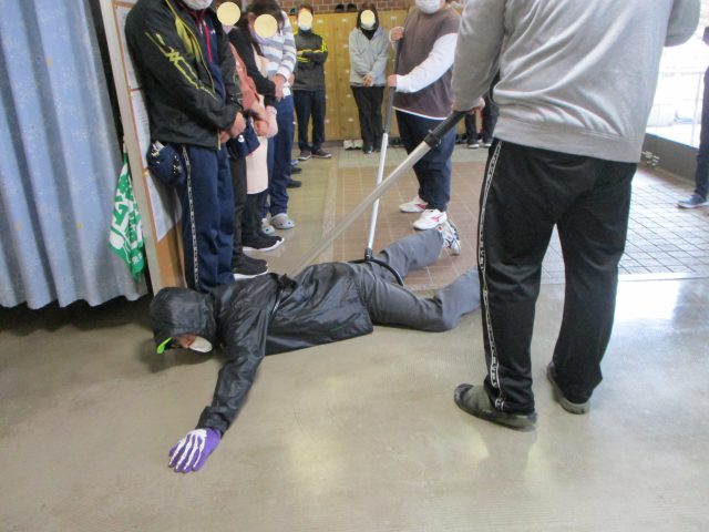 不審者の対応方法、刺すまたの使い方、効果的な威嚇の仕方等、実践を交えながら研修を行いました。
