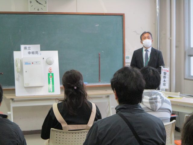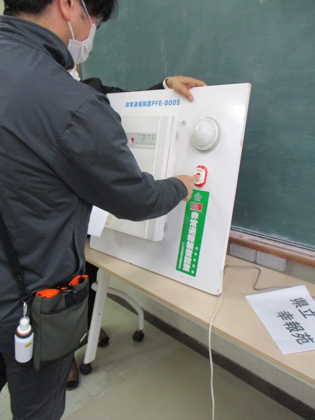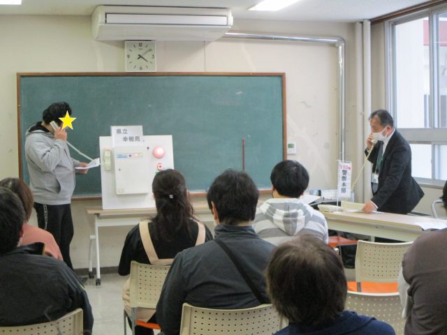 日防災の松浦氏により非常通報装置の使い方を学び、通報してからの対応方法を実際に学ぶことが出来ました。