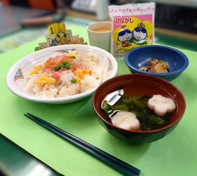 2026.03.04 寿楽苑 3月のできごと 施設情報 今日はひなまつり! 昼食はちらし寿司、おやつは苺モンブランと春の雰囲気を感じていただきました。 玄関ロビーではお雛様が寿楽苑にいらしたお客様をお迎えしています。 外は雨ですが、春のうららかな日差しが待ち遠しいですね。