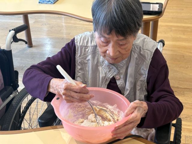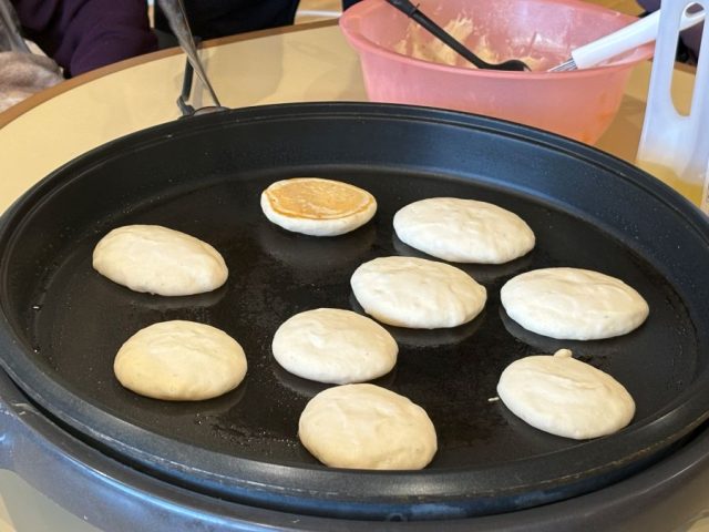 2026.04.03 飛騨寿楽苑 ある日曜日のひととき🍃 施設情報 皆さんとおやつにホットケーキを作って食べました。 牛乳ではなく、飲むヨーグルトを入れて作るともちもちふわふわで とっても美味しくできました♡ 皆さん「おいしいな!」とたくさん食べられました♬