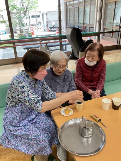2026.04.16 寿楽苑 4月の出来事☕ 施設情報 寿楽苑では週3回、喫茶店を開いています! (今は月・火・木曜日の午後にホールでやっています☺) ボランティアさんが来てくださり、利用者さんの憩いの場となっています♪ 誰でもご利用可能ですので、お立ち寄りの際はご利用ください☕ ☕コーヒー一杯100円です☕