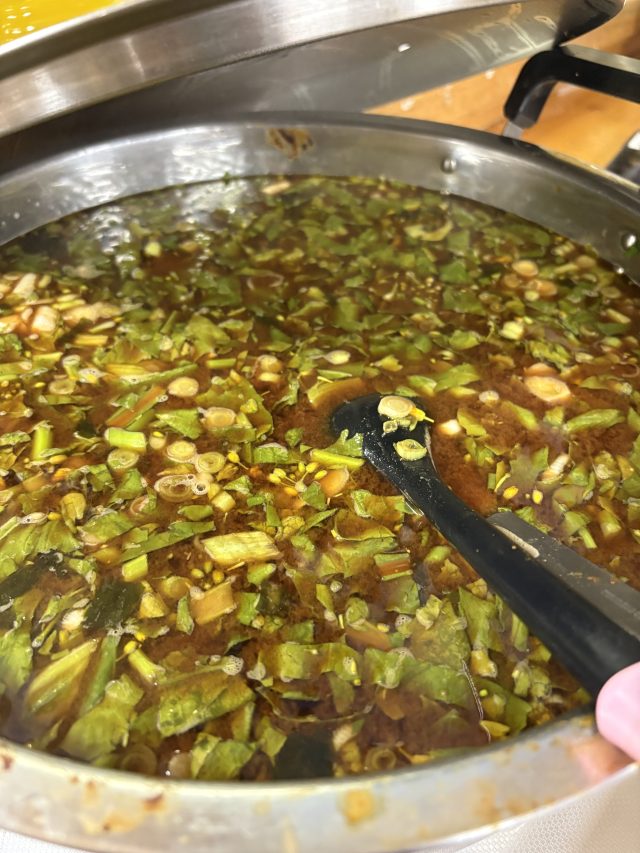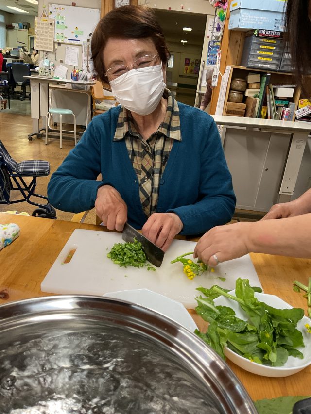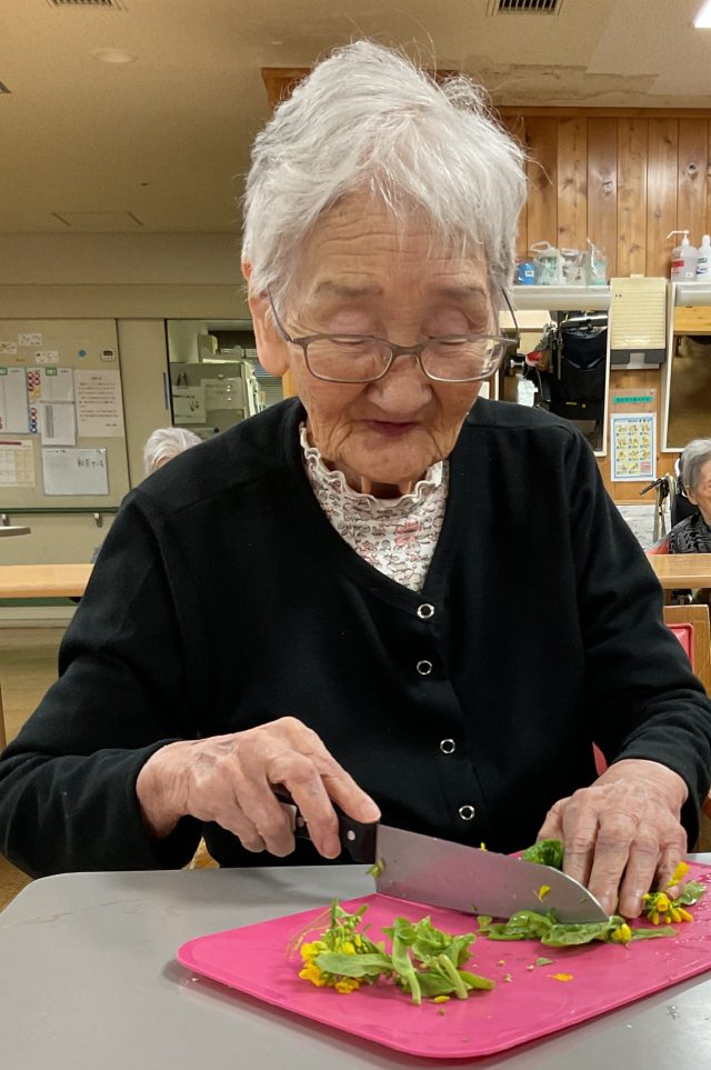 2026.04.28 寿楽苑 4月の出来事🥢 施設情報 今、寿楽苑では厨房エレベータ工事中のため👷汁物の提供が難しく 各フロアの食堂で、利用者の皆さんと汁物を作ったりしています。 この日は、『春のお味噌汁』 なばなを入れて、豆腐、わかめ、ネギと具沢山です。 慣れた手つきで🔪具材を切って🍲煮込んで 美味しいお味噌汁が完成しました☺