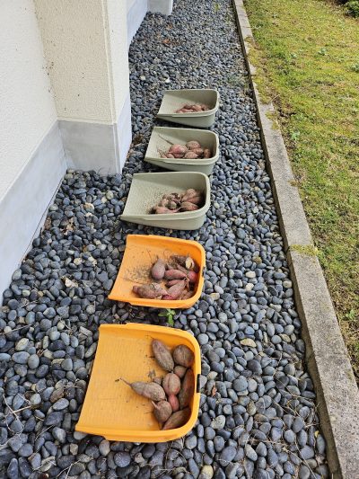 2025.10.08 サニーヒルズみずなみ 🍠芋ほり🍠 その他 秋晴れの中、お芋ほりをしました! たくさんの方に見に来ていただきました😊 青い空、赤い芋🍠 とってもいい笑顔😊 🥰🍠🥰 陰干しして、後日食べていただく予定です😋 楽しみですね。 畑ビフォー アフター これで今年の畑は終了。 きゅうり、トマト、スイカ、お芋と豊作でした😊 来年もたくさんできますように🌠